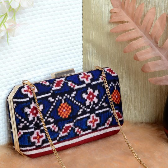 Design : Its in traditional Patola MotifsClutch: Double Ikat Patola ClutchBase Color : Blue Material...