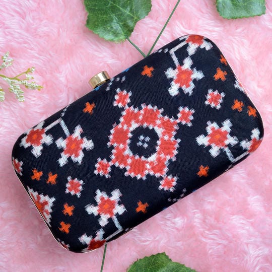 Design : Its in traditional Patola MotifsClutch: Double Ikat Patola ClutchBase Color : Black -...