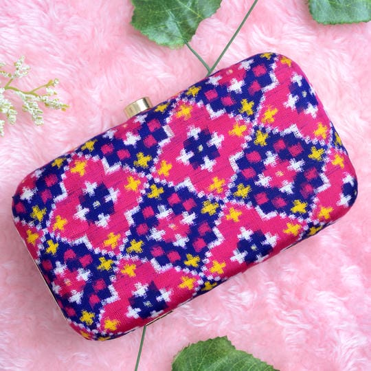 Design : Its in traditional Nau RatanClutch: Double Ikat Patola ClutchBase Color : Pink Material...