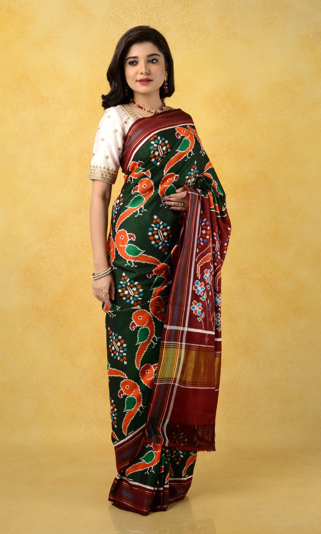 Double Ikat Patola Saree Parrot Motifs