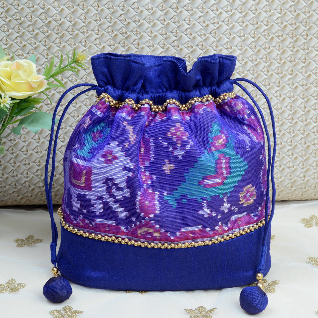 Design : Its in traditional Patola Motifs Batwa : Single Ikat Patola BatwaBase Color : Blue...