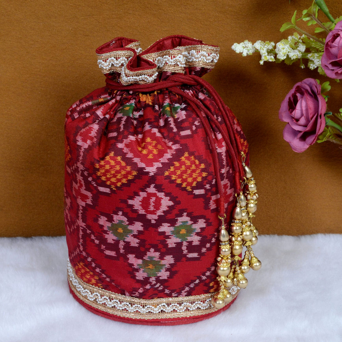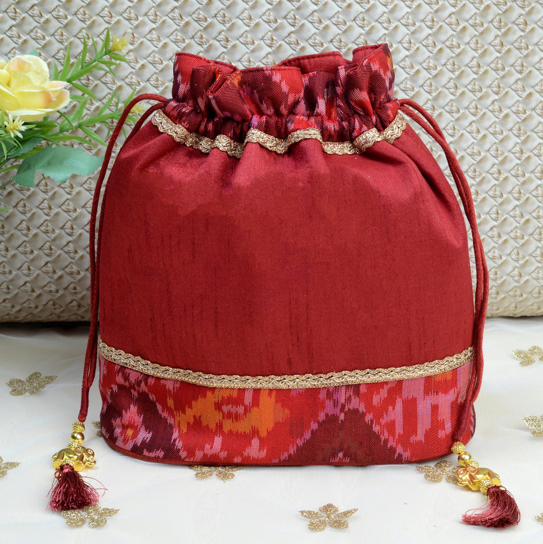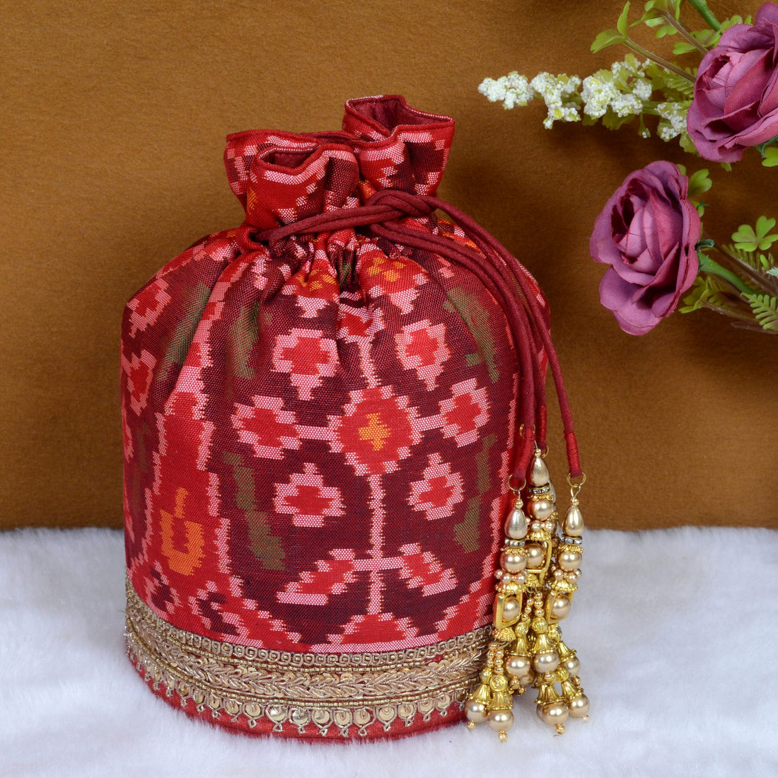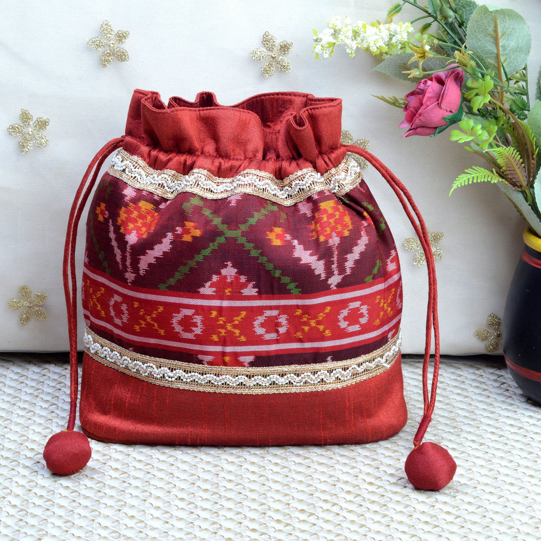 Design : Its in traditional Patola Motifs Batwa : Single Ikat Patola BatwaBase Color : Maroon...