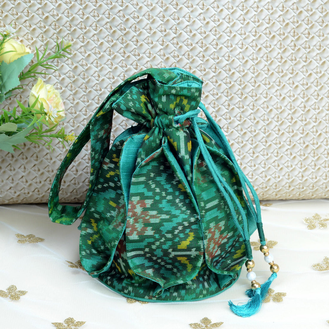 Design : Its in traditional Patola Motifs Batwa : Single Ikat Patola BatwaBase Color : Green...