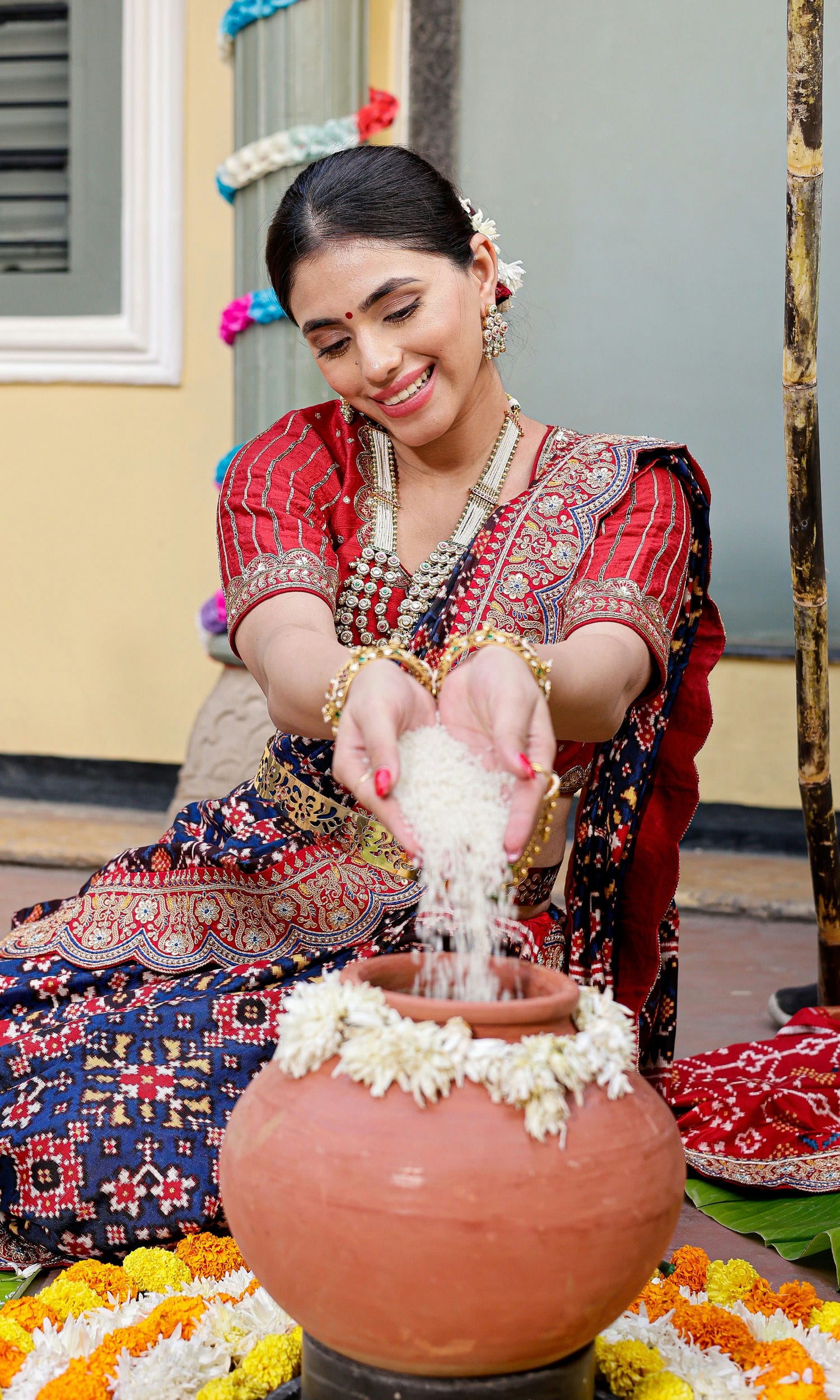 Blouse : Not Available in Pure Double Ikat Saree, It has Pallu on Both Side (Batva - Blouse wear by Model is not part of Saree)